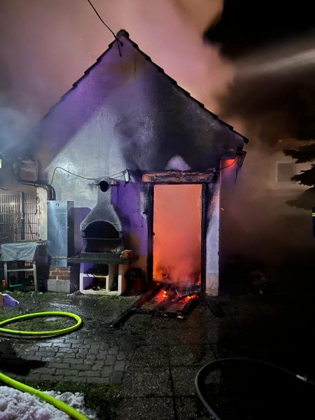Beim Eintreffen an der Einsatzstelle wurde festgestellt das es sich um ein Nebengebäude handelt, welches bereits im Vollbrand stand. Die Wasserversorgung wurde von einem nahegelegenen Hydranten hergestellt.